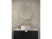 Luxusní vliesové tapety na zeď v béžové barvě s výrazným mramorovém vzorem zlaté barvy na podkladě imitující štukovou omítku. Foto interiéru je pouze ilustrační - odlišné barvy.