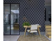 Šedo-modrá vliesové tapety s vinylovém povrchem, plastické čáry tvoří efektní vzorek. Foto interiéru je pouze ilustrační - odlišné barvy.