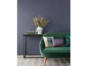 Tmavě modrá vliesové tapety na zeď, květinové vzor v zelené, starorůžové, hnědé a okrové.