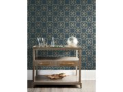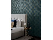 Luxusní tmavě modrá vliesové tapety na zeď, metalické zlaté ornamenty.