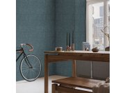 Modrá / teal / vliesové tapety na zeď, imitace hrubší textilie.