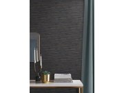 Jemně strukturované hnědo-modrá vliesové tapety evokující hrubší tkaninu. Foto interiéru je pouze ilustrační - odlišné barvy.