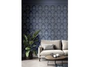 Luxusní tmavě modrá vliesové tapety na zeď, metalické zlaté ornamenty.
