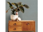 Vliesové tapety s vinylovém povrchem, imitace hrubší tkaniny, melanž v odstínech hnědé a modré. Foto interiéru je pouze ilustrační - odlišné barvy.