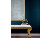 Jemně plastické modrá vliesové tapety s vinylovém povrchem, motivy květin, látkové textura.