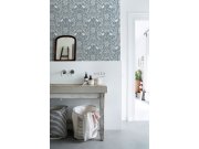 Tapety Yara » Modrá tapeta s rostlinami a ptáčky