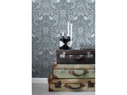 Modro-bílá vliesové tapety na zeď, motivy květin, rostlin a ptáčků.