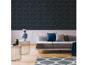 Luxusní metalické modrá vliesové tapety s vinylovém povrchem, plastické motivy palmovéch listů, odstíny šedo-modré, hnědé a zlaté. Foto interiéru je pouze ilustrační - odlišné barvy.