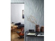 Šedo-modrá vliesové tapety s vinylovém povrchem, plastické čáry tvoří efektní vzorek. Foto interiéru je pouze ilustrační - odlišné barvy.