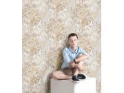 Luxusní plastické vliesové tapety s vinylovém povrchem, motivy větviček a listů v odstínech šedo-modré a hnědo-béžové. Foto interiéru je pouze ilustrační - odlišné barvy.