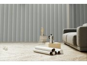 Jemně plastické, pruhovaná, modro-šedo-hnědá, vliesové tapety s vinylovém povrchem, místy metalické stříbřité odlesky.