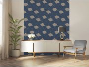 Modro-zlatá květinová tapeta na zeď