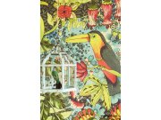 Vliesové, vícebarevná, obrazové tapety, design květin a papoušků.