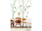 Stromy v šedé a zelené barvě. Lze dozdobit samolepícími dekoracemi. Tapety má navazující vzor, pokud potřebujete pokrýt širší stěnu, stačí přikoupit další kus (sadu 4 pruhů). Jednotlivé pruhy samostatně objednat nelze.