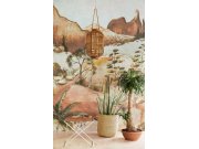 Netradiční obrazové vliesové tapety s motivem krajiny, odstíny okrové, zelené, béžové, růžové, šedé a hnědé. 2 díly 90x280cm.