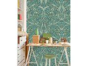"Vířící listy" v zelených odstínech. Kolekce inspirované dílem odvážné, nezávislé a stylové Fridy Kahlo. Tapety má návazný vzor, pro větší šířku stačí přikoupit další kus.