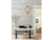 Vliesové obrazové tapety, vlnky v modrých odstínech s metalickými zlatými liniemi. Tapety má návazný vzor, pro větší šířku stačí koupit další kus.