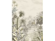 Netradiční obrazové vliesové tapety s motivem krajiny, odstíny okrové, zelené, béžové, růžové, šedé a hnědé. 2 díly 90x280cm.