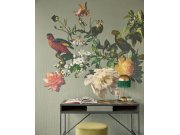 Vliesové, vícebarevná, obrazové tapety, design květin a papoušků.