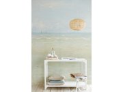 Netradiční obrazové vliesové tapety s motivem krajiny, odstíny zelené, béžové, modré, šedé. 2 díly 90x280cm.
