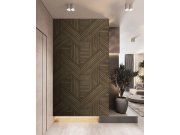 Jemně strukturovaná, pololesklá, vliesové tapety na zeď, odstíny hnědé, zlaté linie; imitace dřevěného obložení. 2 díly 65 x 280 cm. Tapety má navazující vzor, pokud potřebujete pokrýt širší stěnu, stačí přikoupit další kus (sadu 2 pruhů). Jednotlivé pruh