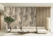 Geometrické vliesové tapety na zeď, odstíny šedo-béžové, evokuje dřevěný stěnové obklad. ze 2 dílů 0,53 x 280cm. Tapety má navazující vzor, pokud potřebujete pokrýt širší stěnu, stačí přikoupit další kus (sadu 2 pruhů). Jednotlivé pruhy samostatně objedna