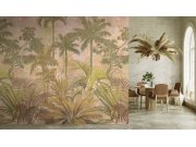 Vliesové tapety na zeď, palmy a tropické listy, odstíny pudrově růžové, béžové, zelené, hnědé, okrové. ze 4 dílů 0,53 x 280cm . Tapety má navazující vzor, pokud potřebujete pokrýt širší stěnu, stačí přikoupit další kus (sadu 4 pruhů). Jednotlivé pruhy sam