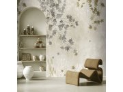 Vliesové tapety na zeď, hrubší látkové textura, motivy rostlin ve vázách, odstíny hnědé, béžové, růžové, šedé. Pro větší šířku lze kombinovat s fototapetou DGJOY1011-300 - viz foto. Co vás zaujme: věrnost imitace látky, inspirace uměleckými díly. Design: