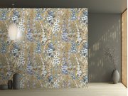 Vliesové obrazové tapety na zeď, jemně plastické textura, pozadí v odstínech béžové, hnědé a šedé, modro bílé květy. Pro větší šířku lze kombinovat s tapetou DGTRA5011-300 a DGTRA5013-300 - viz foto. Co vás zaujme: odolnost, snadná údržba a čištění. Desig