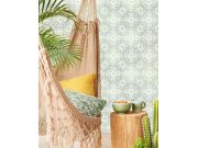 Vliesové obrazové tapety, design keramických obkladaček tvořících rozety. Tapety má návazný vzor, pro větší šířku stačí přikoupit další kus.