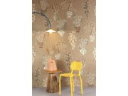 Vliesové tapety na zeď, hrubší látkové textura, motivy rostlin ve vázách, odstíny hnědé, béžové, růžové, šedé. Pro větší šířku lze kombinovat s fototapetou DGJOY1012-260 - viz foto. Co vás zaujme: věrnost imitace látky, inspirace uměleckými díly. Design: