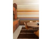 Vliesové obrazové tapety na zeď, jemně plastické látkové textura, odstíny oranžové, béžové, fialové a hnědé, horizontální pruhy. Tapety má navazující vzor, pokud potřebujete pokrýt širší stěnu, stačí přikoupit další kus. Co vás zaujme: odolnost, snadná úd