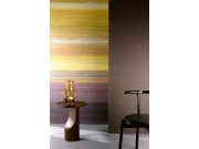 Vliesové obrazové tapety na zeď, jemně plastické látkové textura, odstíny hnědé, žluté, fialové a krémové, horizontální pruhy. Tapety má navazující vzor, pokud potřebujete pokrýt širší stěnu, stačí přikoupit další kus. Co vás zaujme: odolnost, snadná údrž