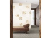 Vliesové obrazové tapety na zeď, jemně textilní textura, šedo béžové podklad, šedo hnědé obruby čtverců a šedo hnědé vlnky. Pro větší šířku lze kombinovat s tapetou DGTRA6011-300 a DGTRA6012-300 - viz foto. Co vás zaujme: odolnost, snadná údržba a čištění