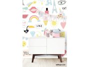 Bláznivě veselý motiv v tyrkysové a růžové barvě - kdo říkal, že na jedné tapetě nemůže být jednorožec, zmrzlina, meloun, Eiffelova věž, srdce a spousta dalších hezkých věcí.