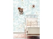 Jemné stromy v šedé a zelené barvě, v pozadí srnky. Tuto tapetu můžete lehce dozdobit samolepkami se zvířátky.