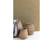 Vliesové tapety s vinylovém povrchem, imitace hrubší tkaniny, melanž v odstínech okrové a hnědé.