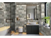 Odolná, omyvatelná, vinylové tapety na zeď, odstíny šedé. Věrná imitace obkladů.