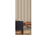 Luxusní zlato-béžové a pískové vliesové tapety s vinylovém povrchem, rozdílné textury a odstíny tvoří pruhy.