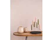 Starorůžové vliesové tapety na zeď, motivy květin a pávů, hrubší textliní struktura.