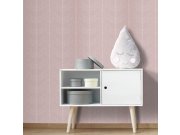 Hladká růžové vliesové tapety na zeď, stínovéní tvoří efekt dřevěných palubek. Palubky cca 13cm. Foto interiéru je pouze ilustrační.