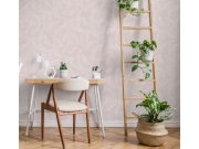 Růžové vliesové tapety, bílé obrysy palmovéch listů. Tapety vhodná do ložnice, obýváku, pracovny.