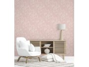 Jemně strukturované růžové vliesové tapety na zeď, hladké metalické listy a květiny.