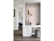 Starorůžové vliesové tapety na zeď, motivy květin a pávů, hrubší textliní struktura.