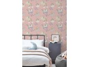 Růžové vliesové tapety s vinylovém povrchem, květinové vzor v odstínech zelené a modré.