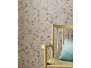 Starorůžové vliesové tapety na zeď, květiny v odstínech zelené a hnědé.