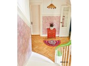 Strukturované starorůžové vliesové tapety se zámeckým květinovém vzorem.