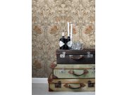 Hnědá vliesové tapety se secesním květinovém vzorem v odstínech zelené, hnědé, béžové a starorůžové.