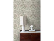 Světle béžové vliesové tapety se secesním květinovém vzorem v odstínech zelené, hnědé, béžové a starorůžové.