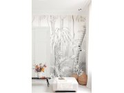 Šedá vliesové obrazové tapety s motivem listů a stromů. Foto interiéru je pouze ilustrační. Pro větší šířku lze kombinovat s fototapetymi DG3MOE1011, DG3MOE1012 a DG3MOE1013 - viz foto